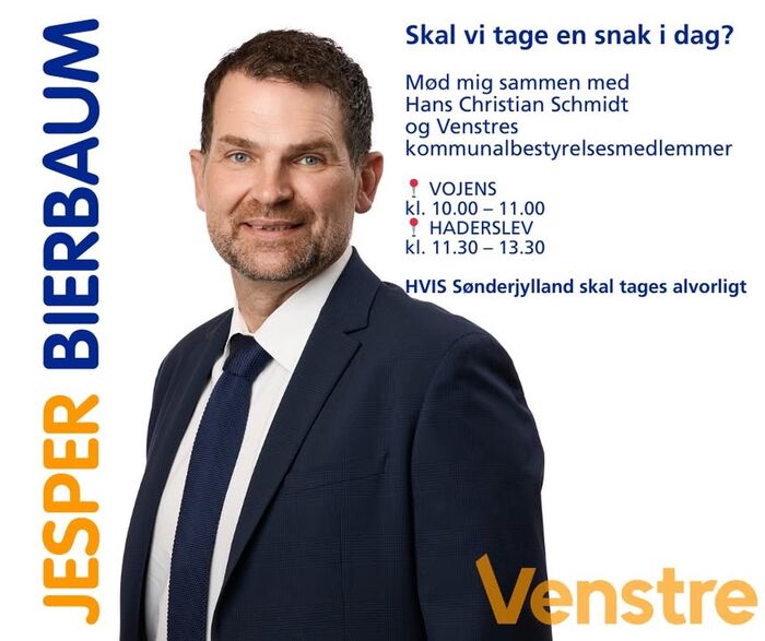 Vi er stolte af at kunne præsentere Jesper B. Bierbaum som ny folketingskandidat for Venstre i Haderslev-kredsen.
